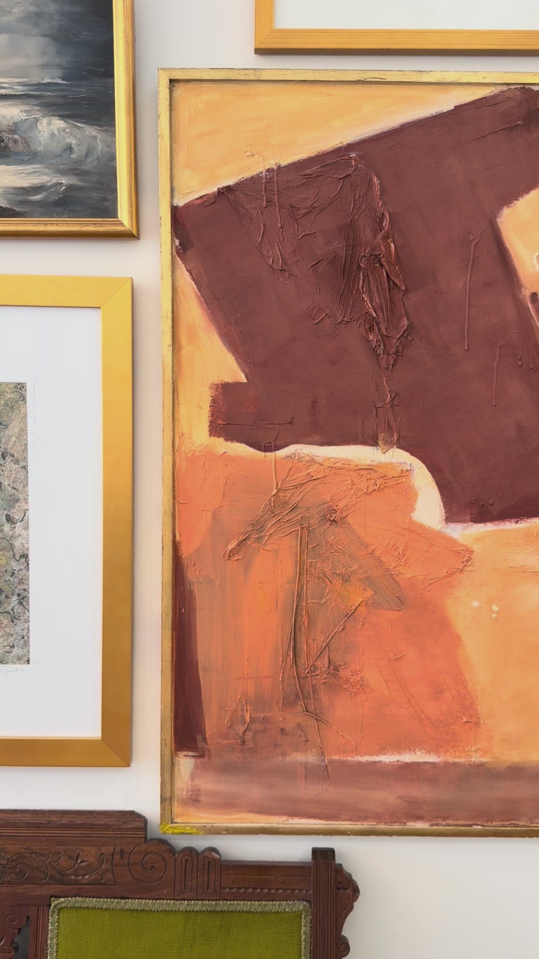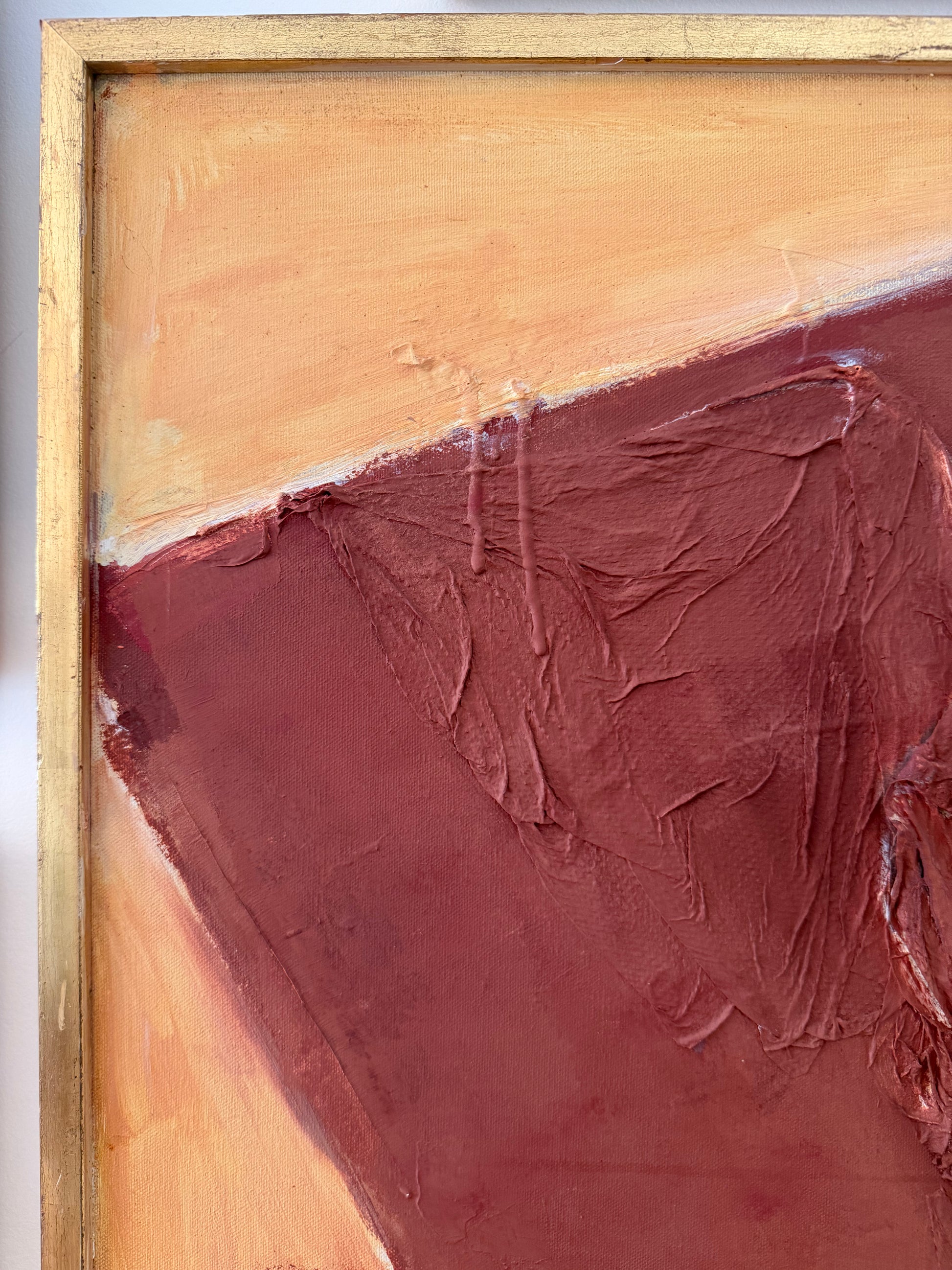American School (20th Century), "Abstract Collage," vintage acrylic and paper towels collage on canvas, unsigned, presented in a wood gallery liner frame. Beautiful neutral tones!