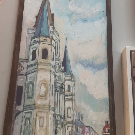 Gorgeous colors in this original oil on board by known New Orleans artist Connor McManus. Custom frame.