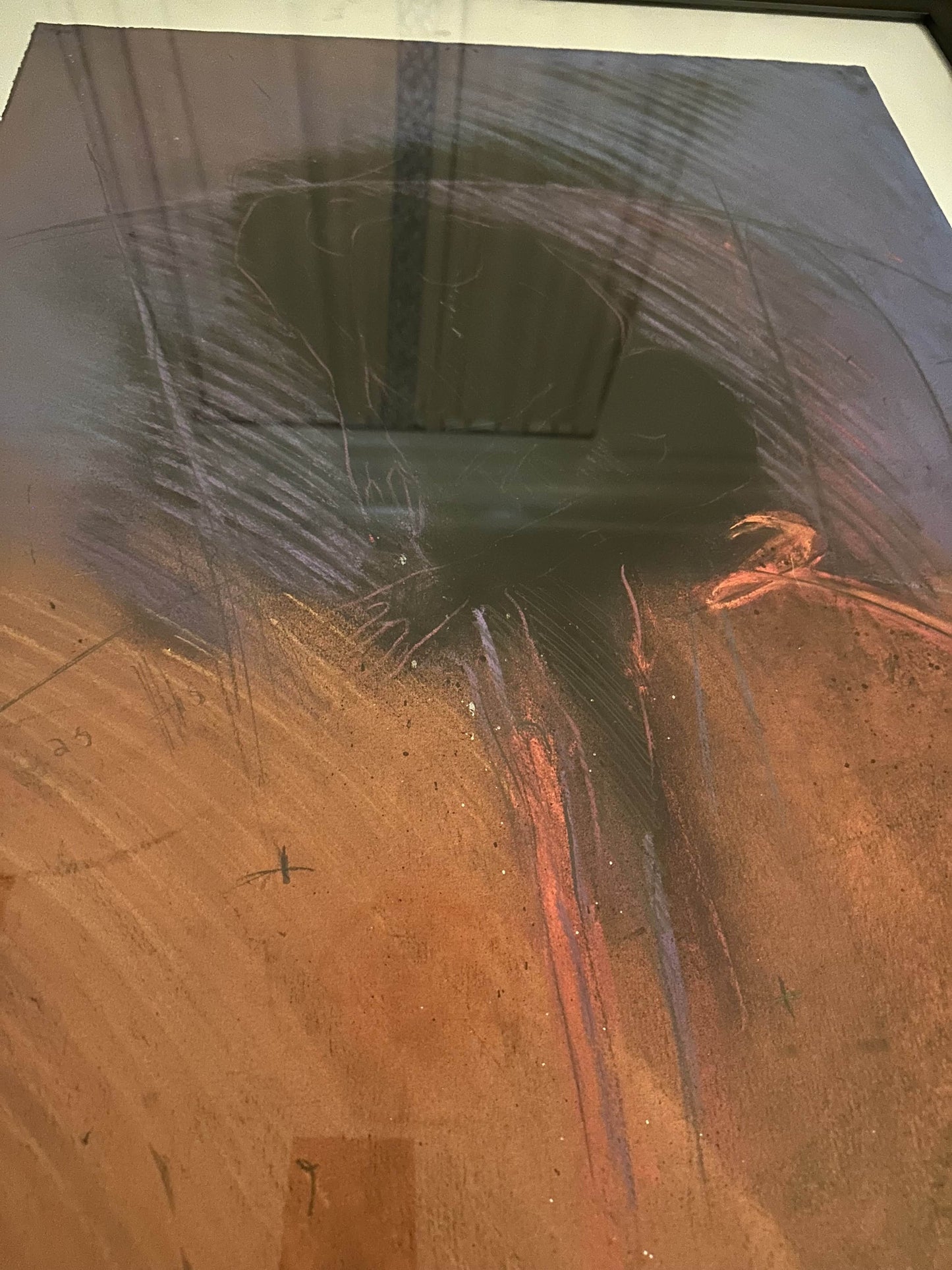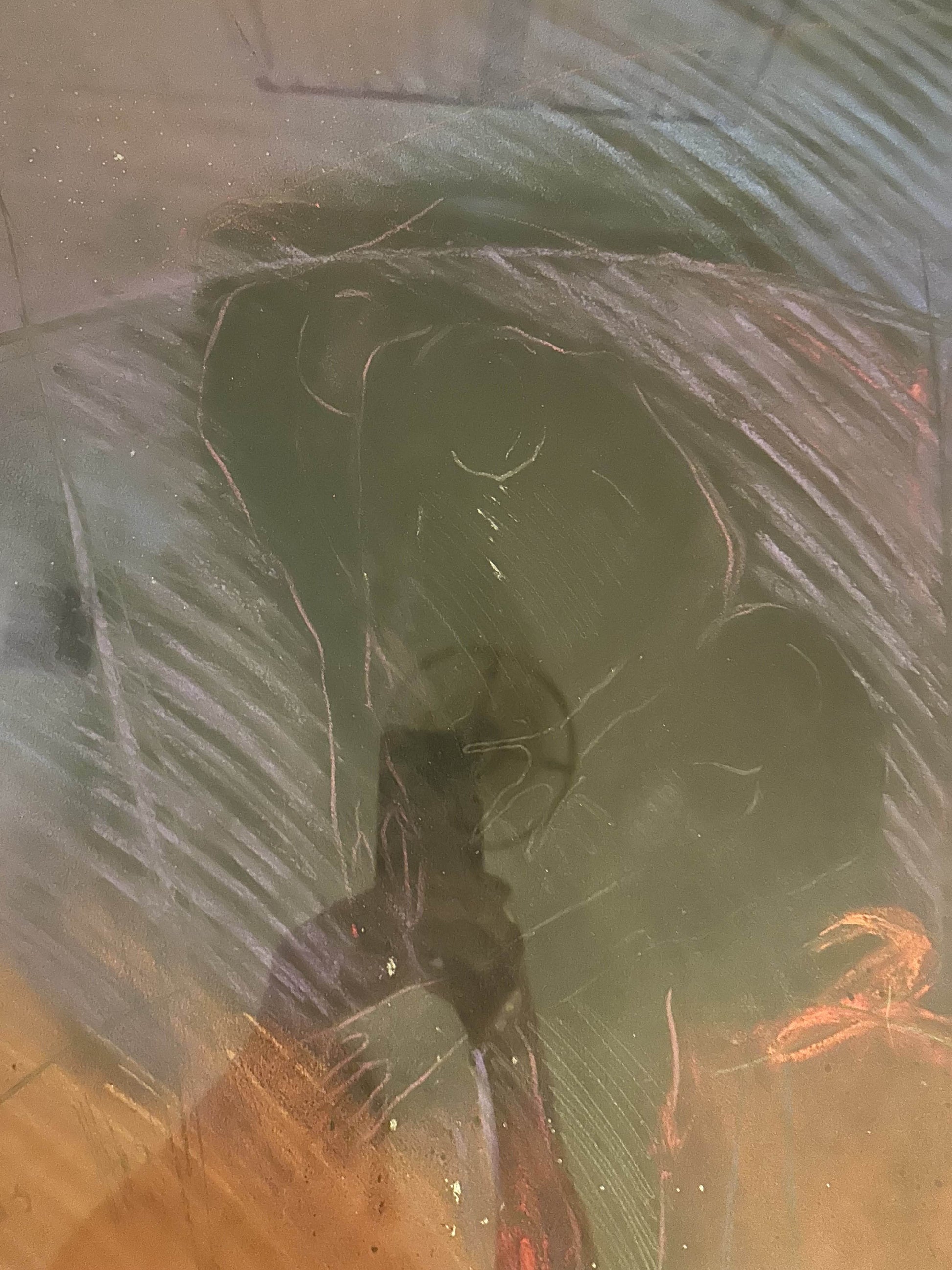 Stunning artwork by a New Orleans artist, signed on the lower right. Acquired at Contemporary Arts Center auction over 20 years ago, formerly part of the Katz & Besthoff collection. Charcoal on paper. Custom frame.