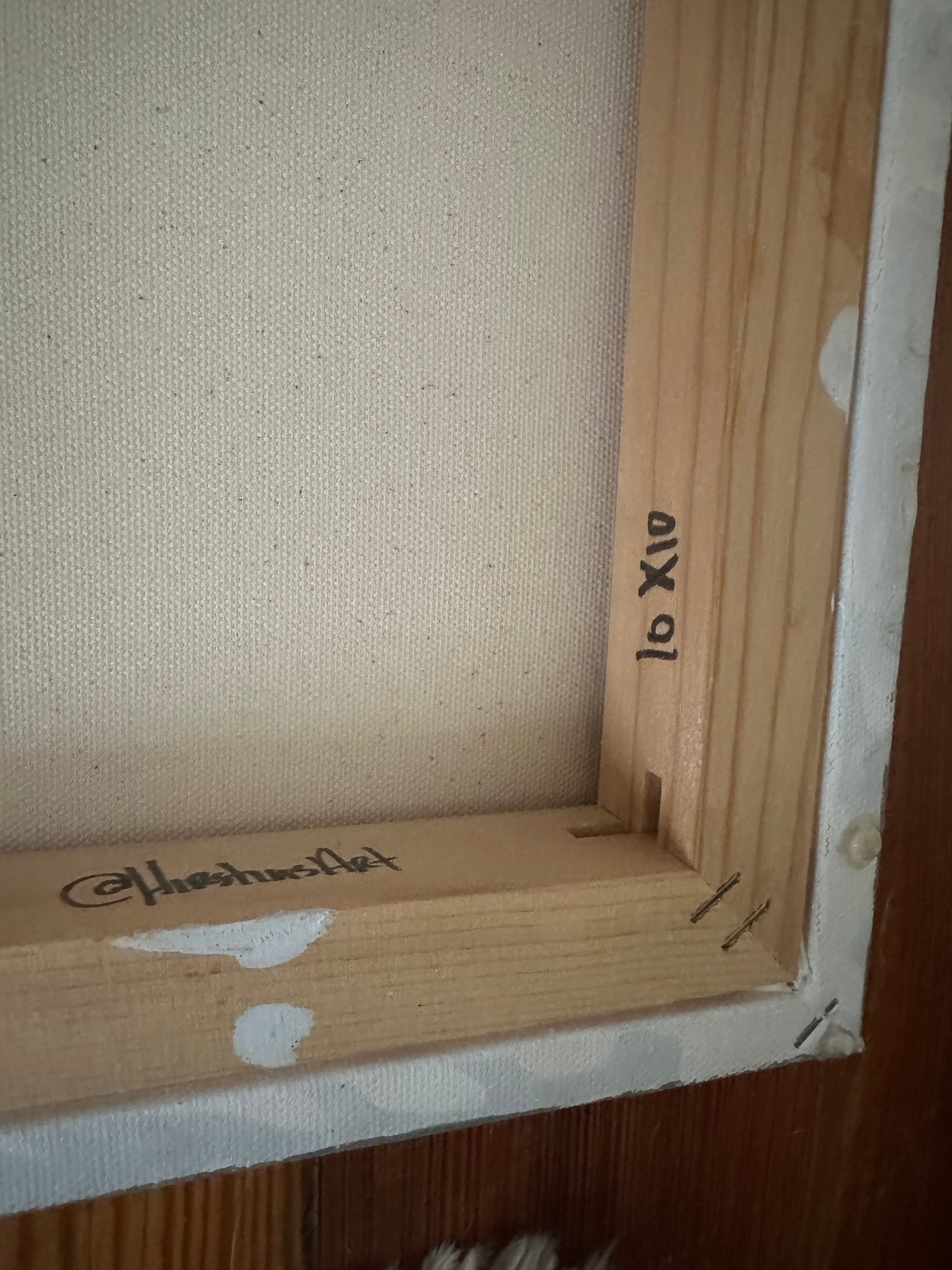 Original, signed marbellized painting with gold and silver accents and a shiny coat with a painted silver edge by a Mandeville artist.
