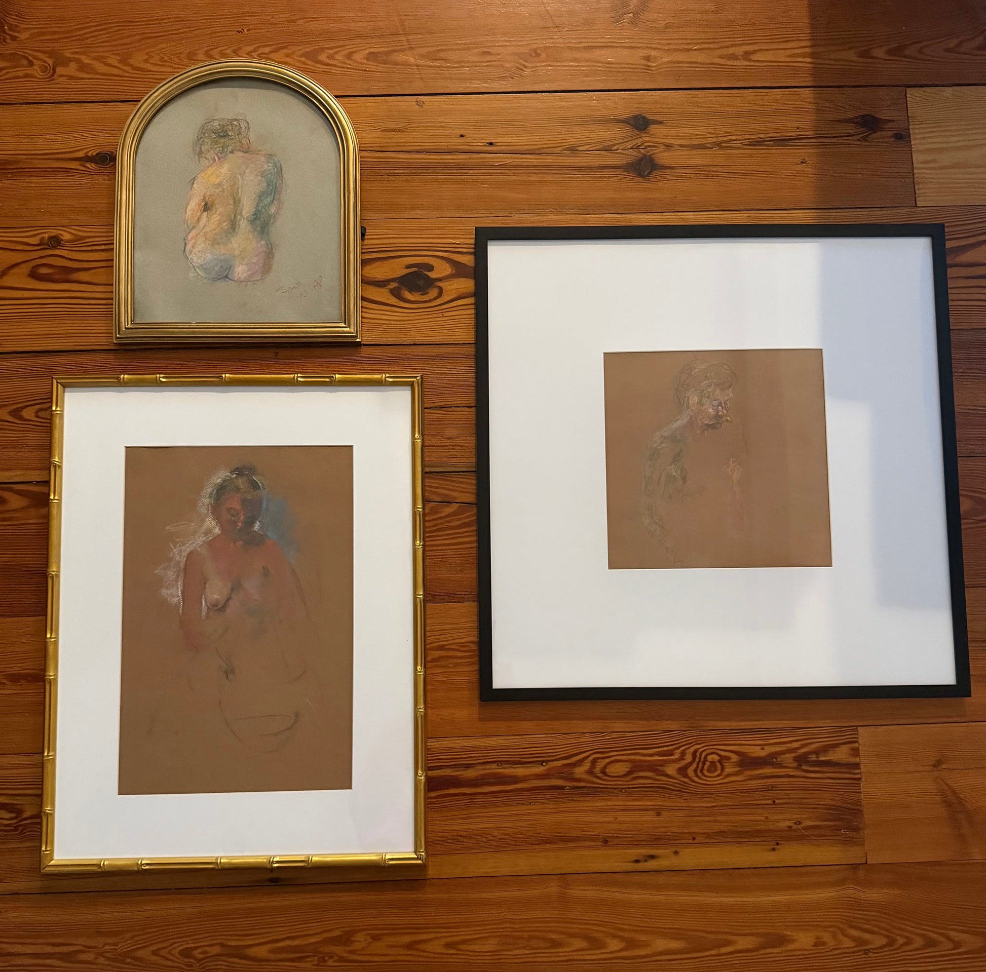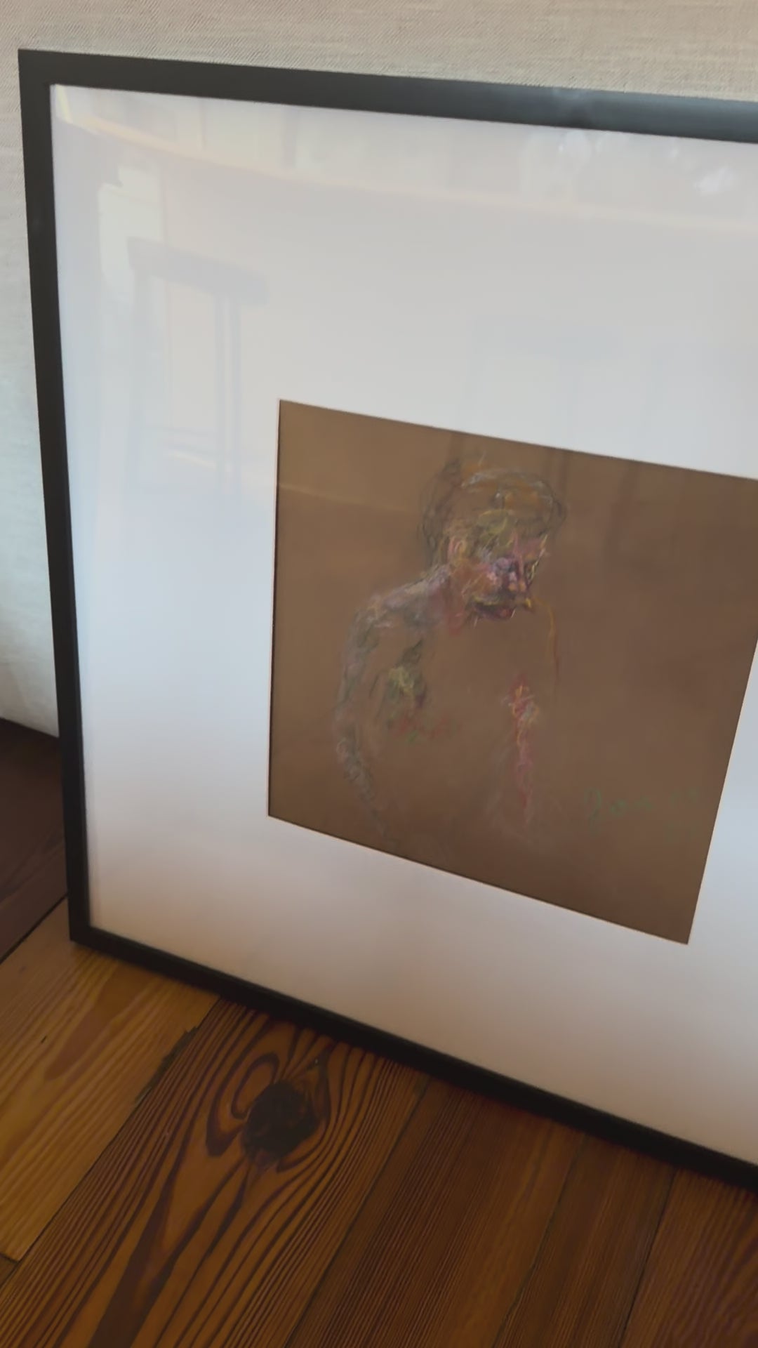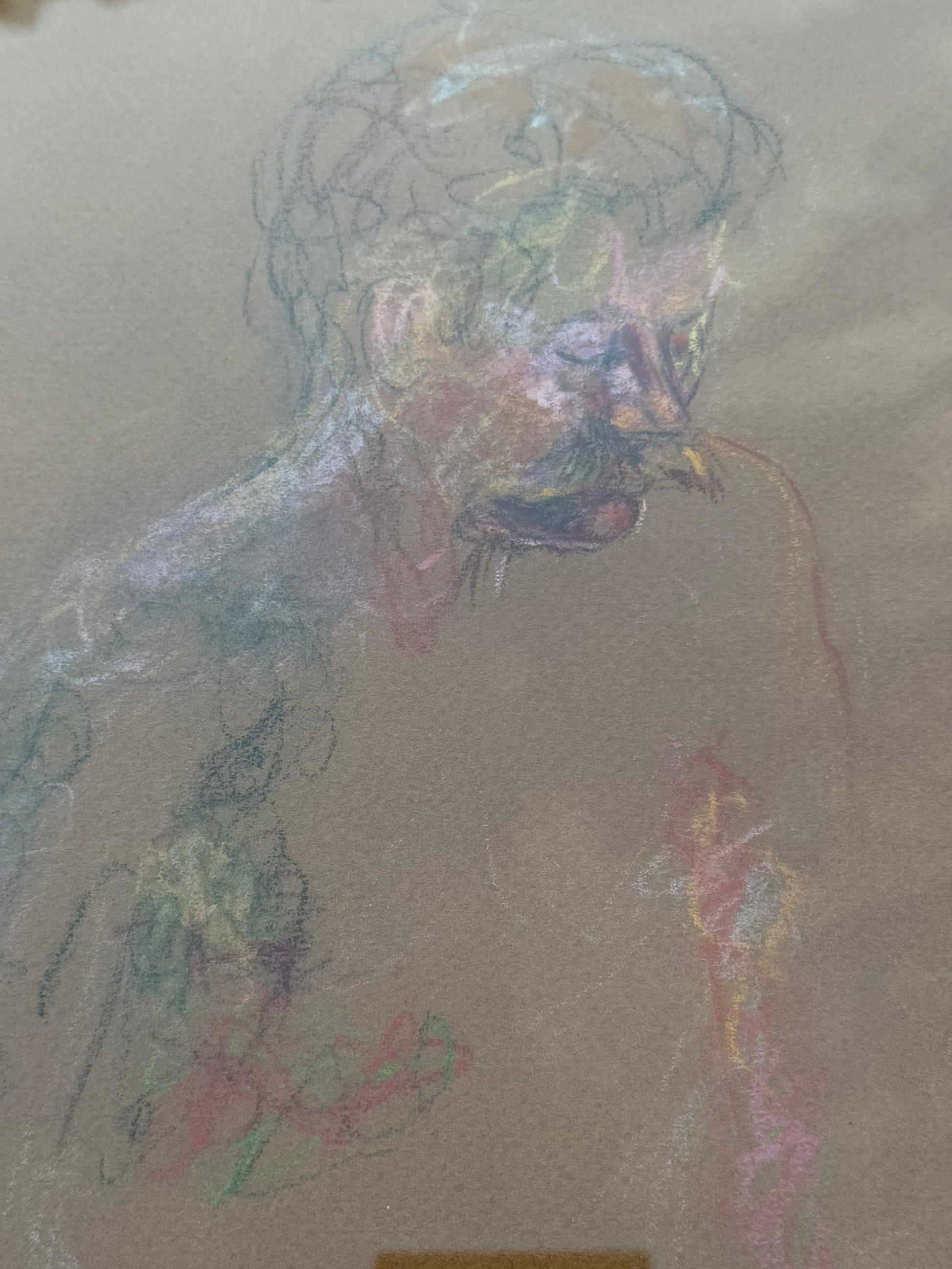 Charcoal drawing of a mustached man by a New Orleans artist in a cool black frame with oversized mat. Signed original.