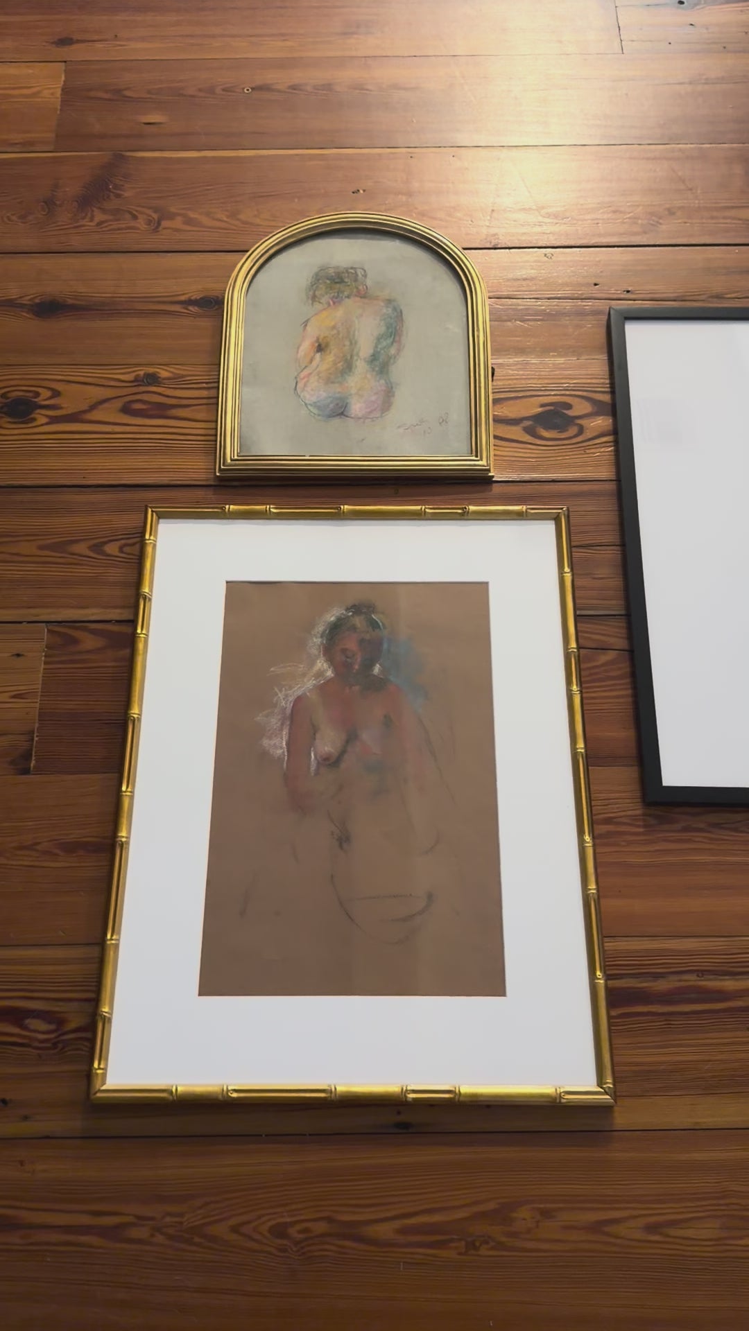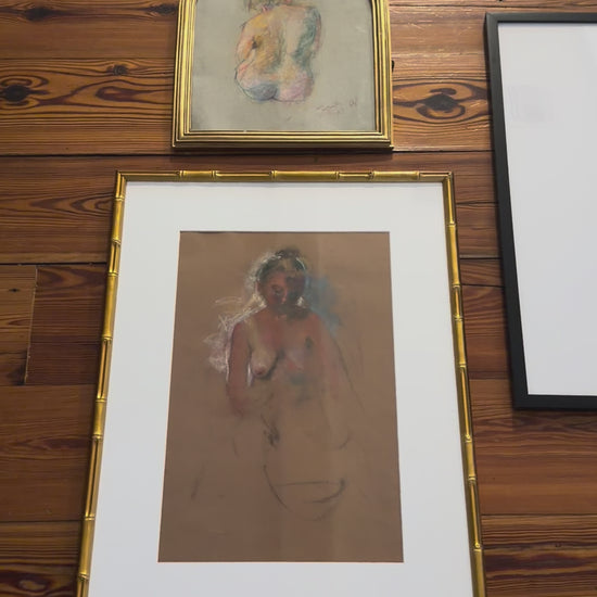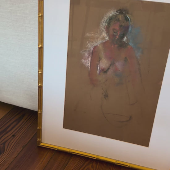Nude Woman, a stunning charcoal piece by a renowned New Orleans artist. Framed in exquisite matted bamboo.