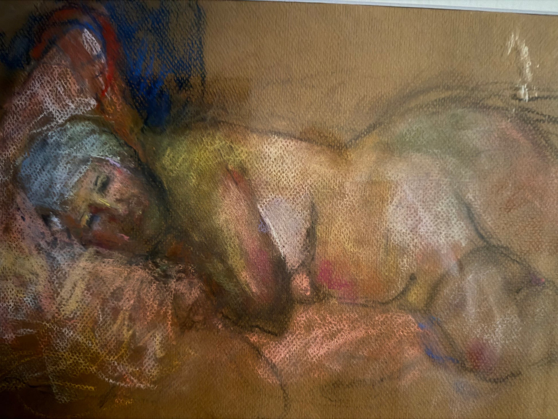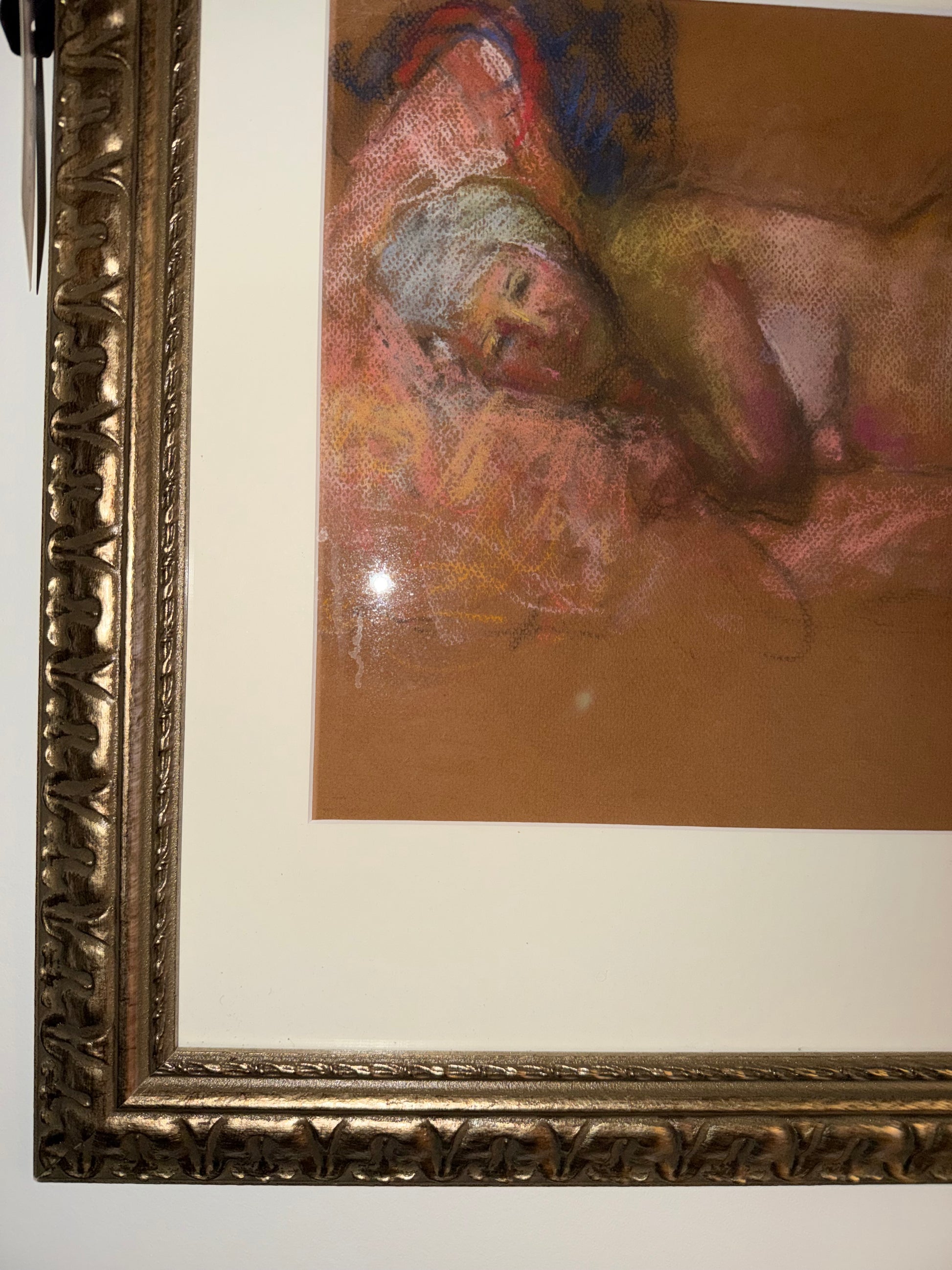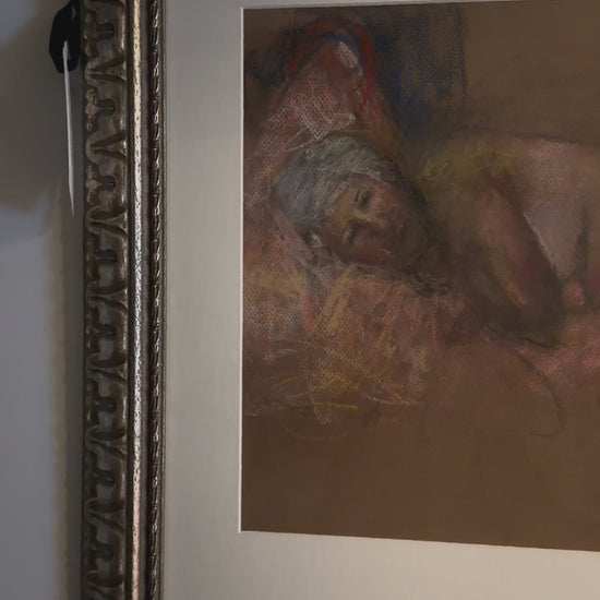 Stunning reclining nude of a woman by a New Orleans artist. Newly framed and matted in gorgeous ornate bronze frame.