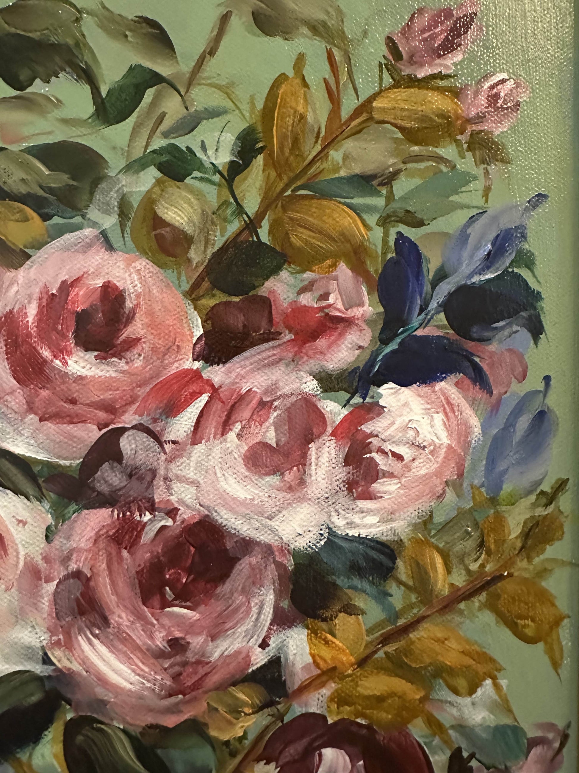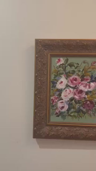 Add a pop of color to your space with this original acrylic peony painting on canvas by a Virginia artist, beautifully framed.