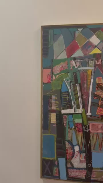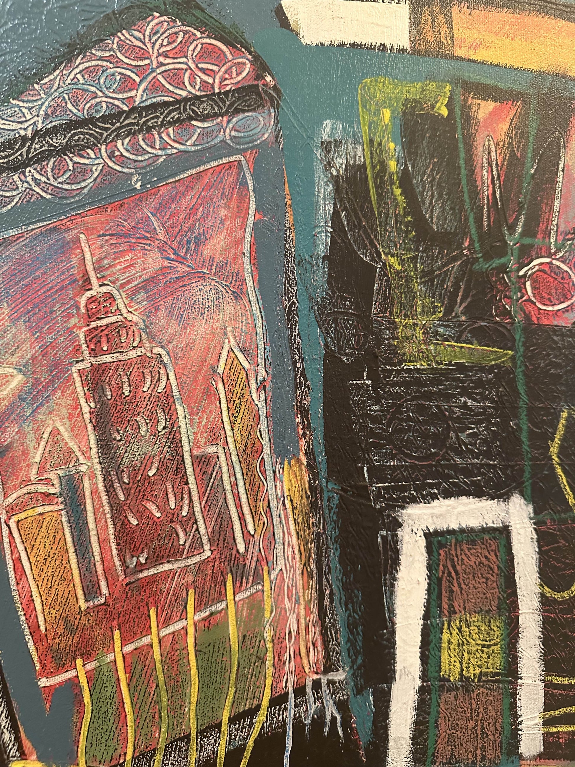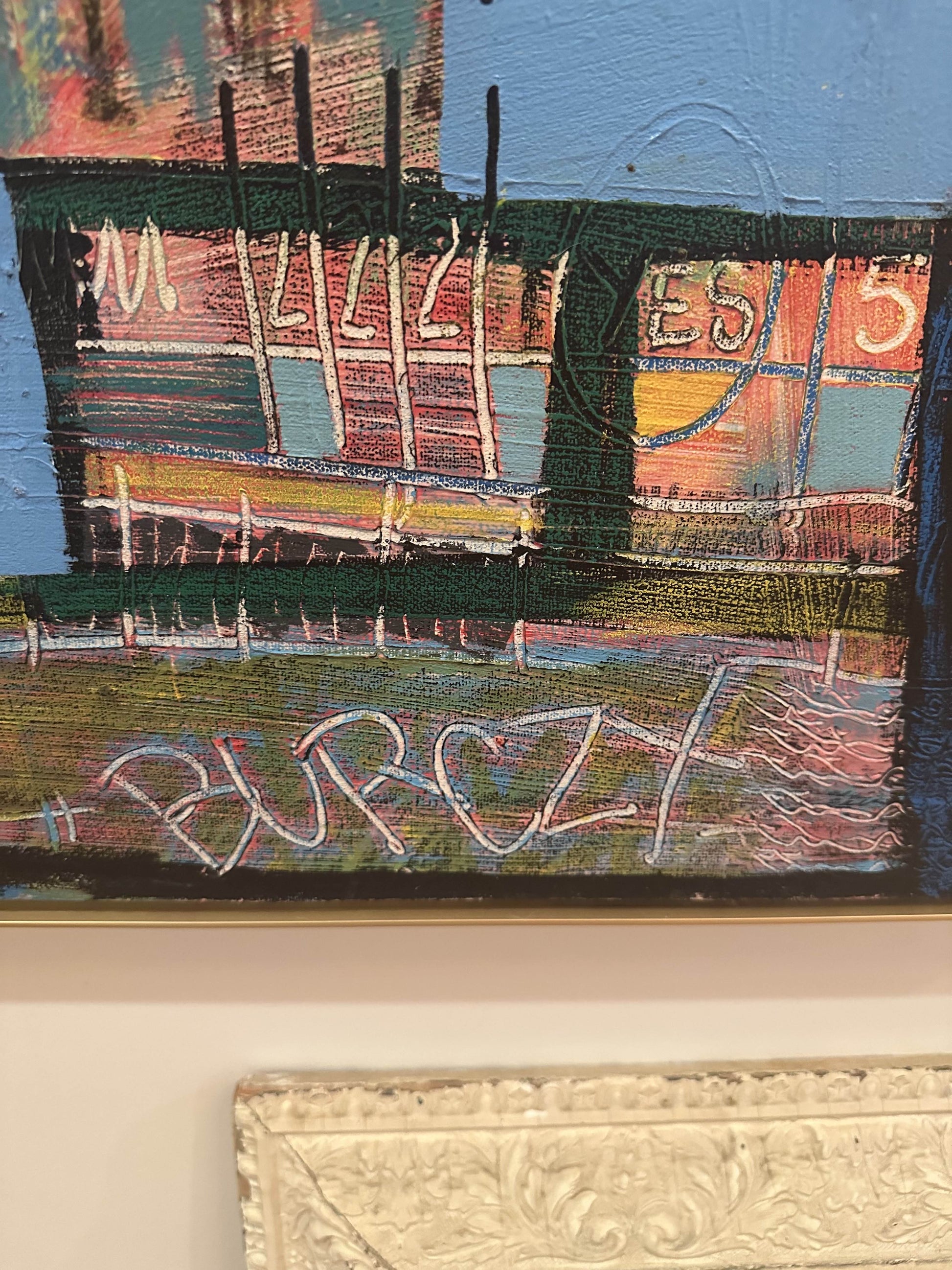 Stunning original acrylic abstract canvas! Hoboken resident since 1989, Robert Burczy grew up in Hazelton, PA, but found his artistic voice in Hoboken. Self-taught and inspired by NYC elements. Beautiful in person. Currently displayed in my living room, so no pressure to buy!