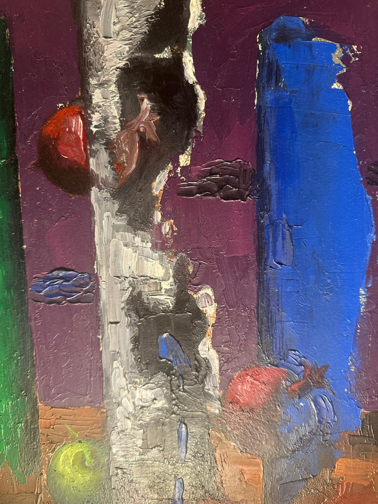This vibrant original oil painting on board is by Anvar Kamilevich Saifutdinov, a renowned Russian artist from Tatarstan, born in 1963. It is signed, titled, and dated between 1986 and 1987 on the back, with a special dedication from 1988. As a member of the Union of Artists of Tatarstan and founder of the art group Dastan, Anvar’s artwork is highly sought after.