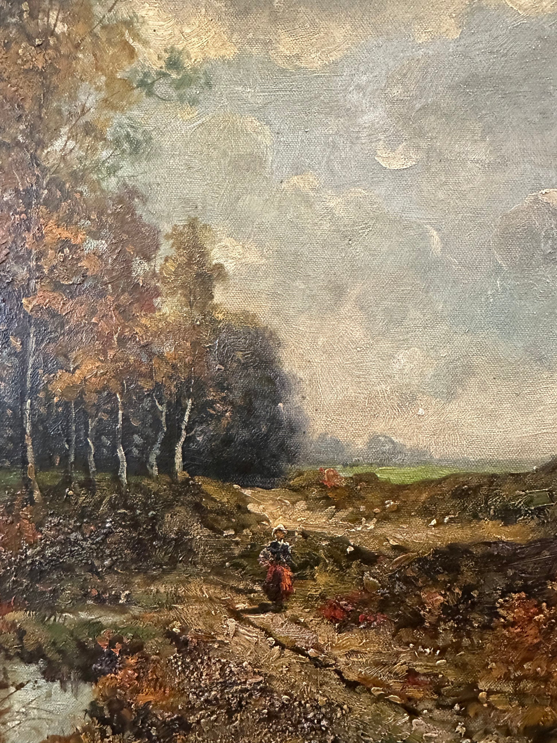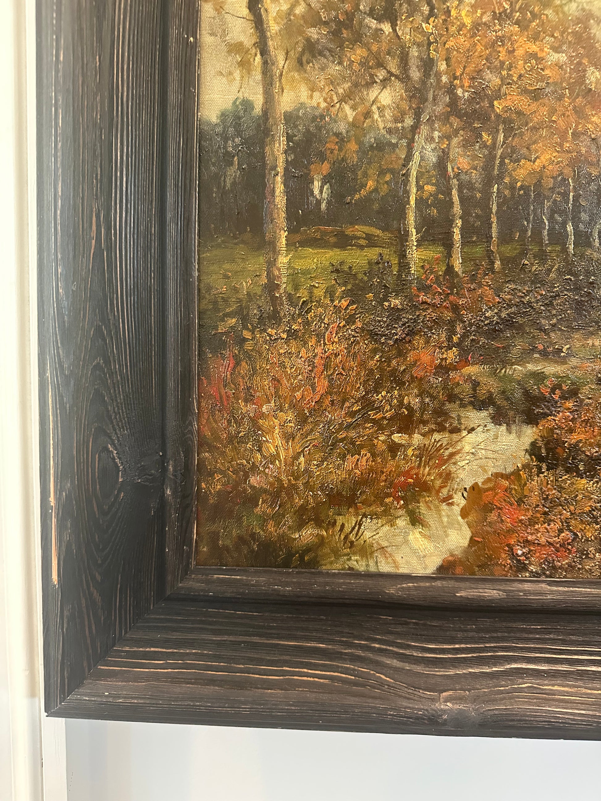 Fall in love with this original vintage oil painting by C. C. Cooper. Lovely trees in a wood frame with brown hues, signed lower right.