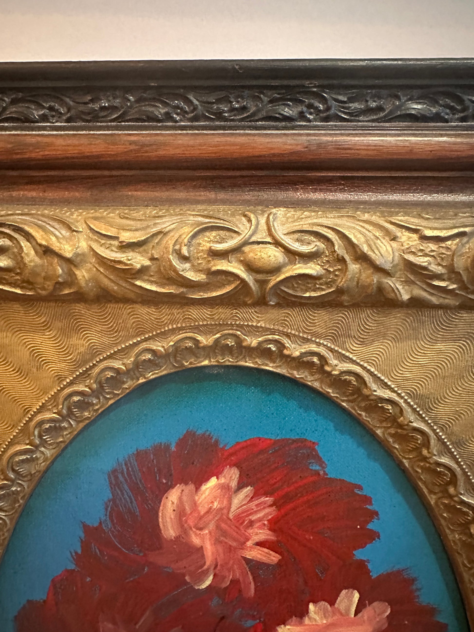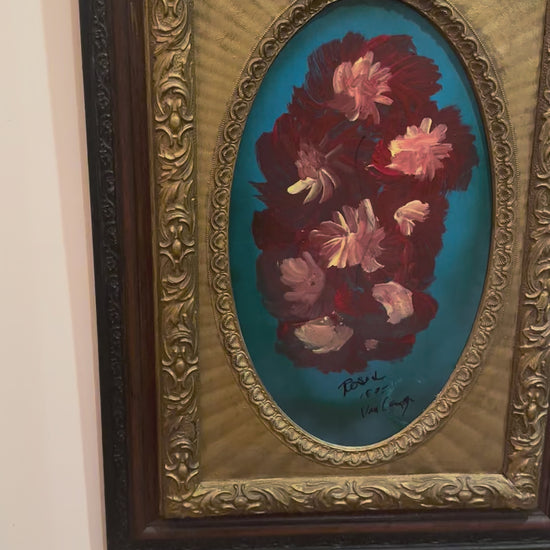Vibrant Original Oil on Panel Red Floral in Stunning Antique Frame